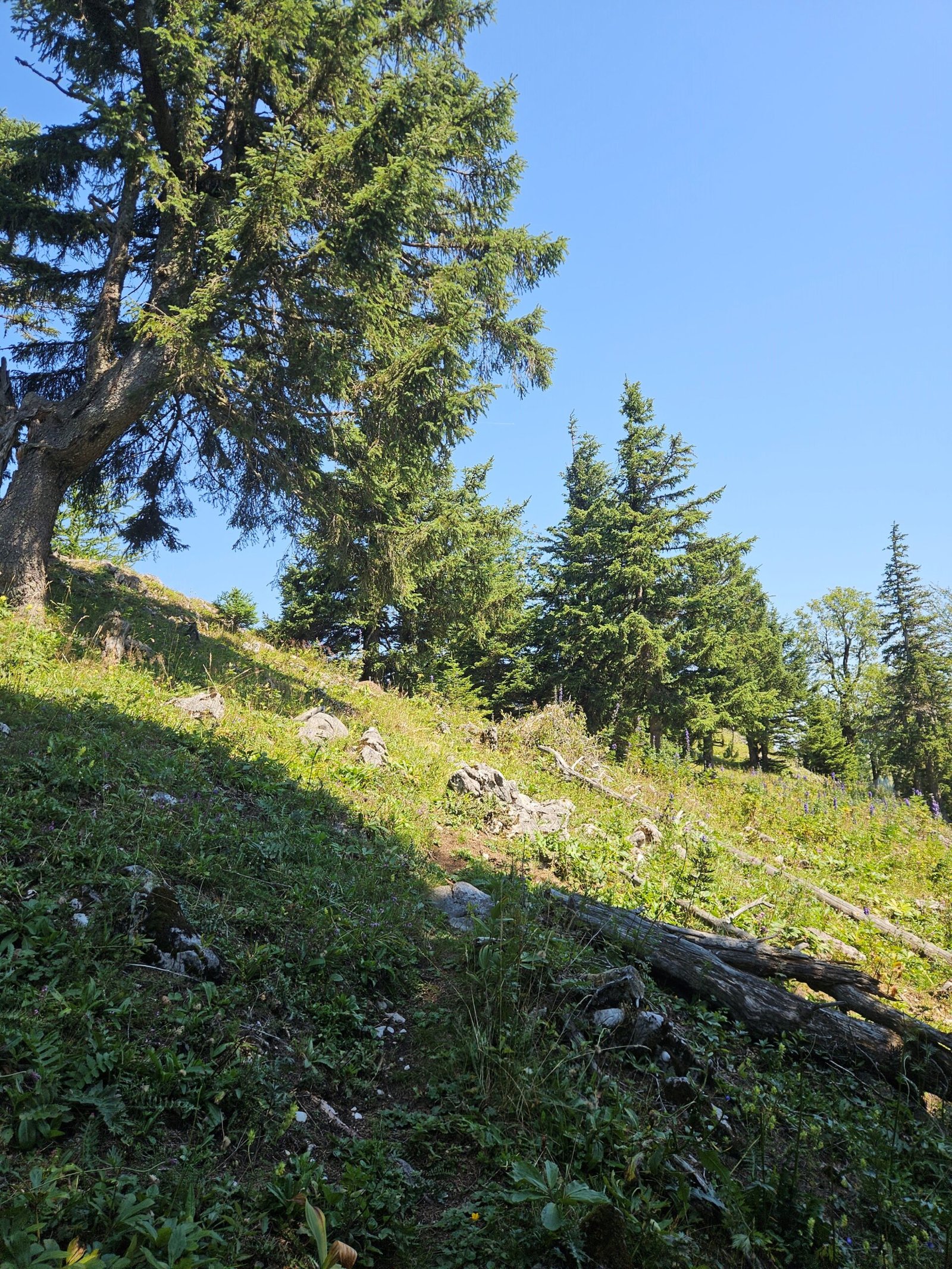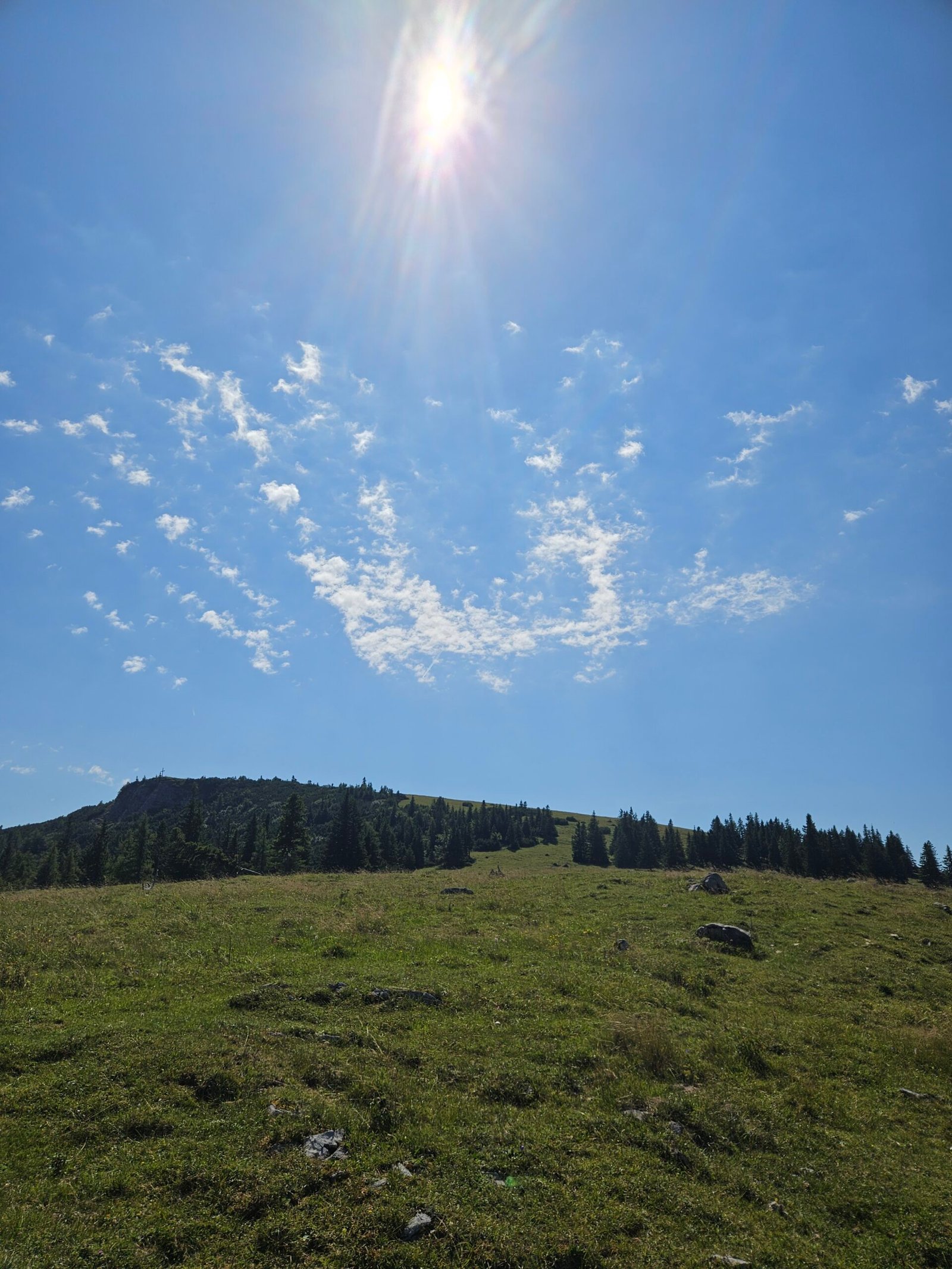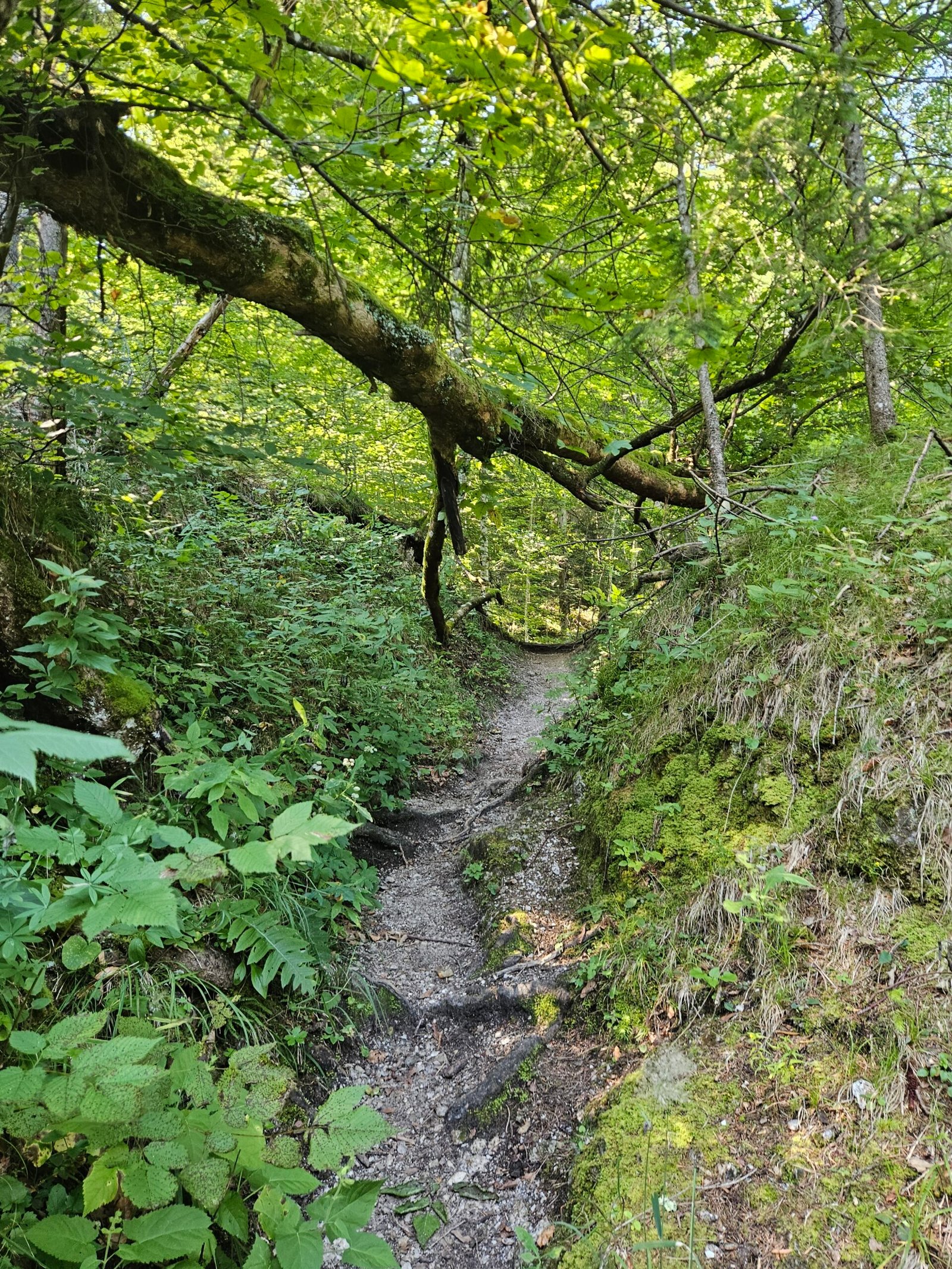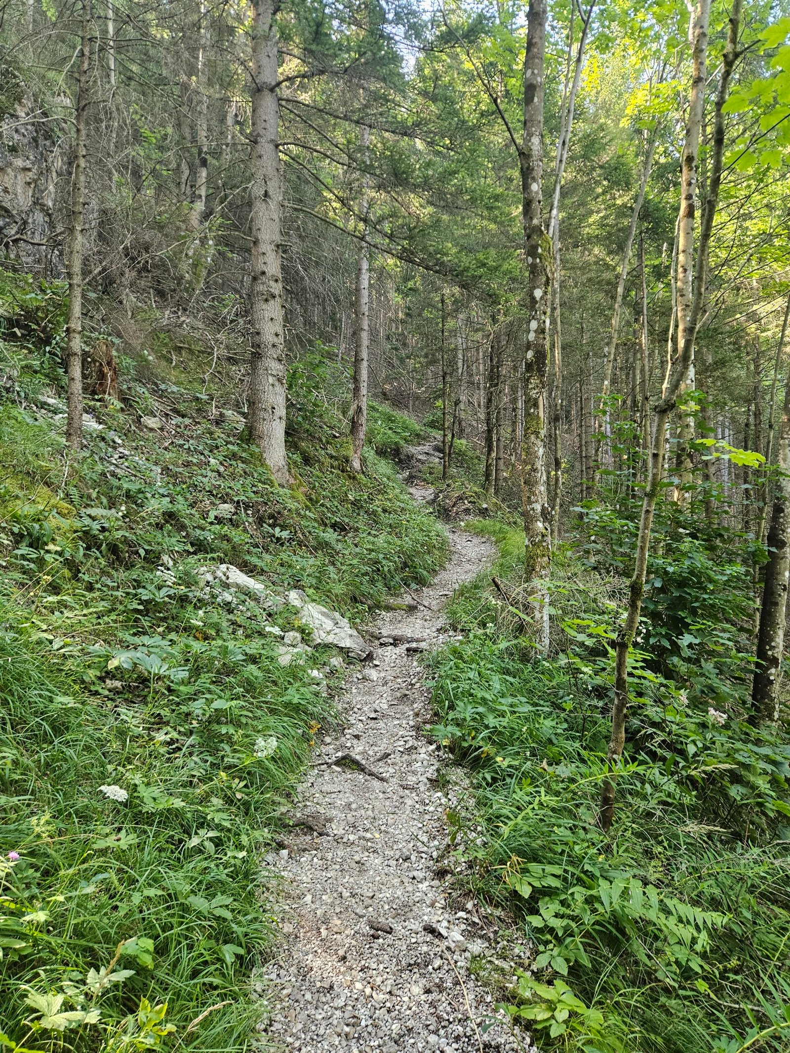 Ohne viele Umschweife starten wir die heutige Tagestour in Kernhof, genauer gesagt an der Bushaltestelle Kernhof Abzweigung Thalerl. Vorbei an Eisstockverein (Öffentliches WC!) und Feuerwehr bahnen wir uns den Weg hinüber zum rot-markierten Wanderweg 52/53, der in südliche Richtung zuerst über einen Feldweg und dann in ein kleines Tal hinein führt. Es folgt der erste kleinere Anstieg. Durch lichten, aber angenehm kühlen Bergwald, geht es nach oben. Das wird -kleiner Spoiler- nicht immer so bleiben.