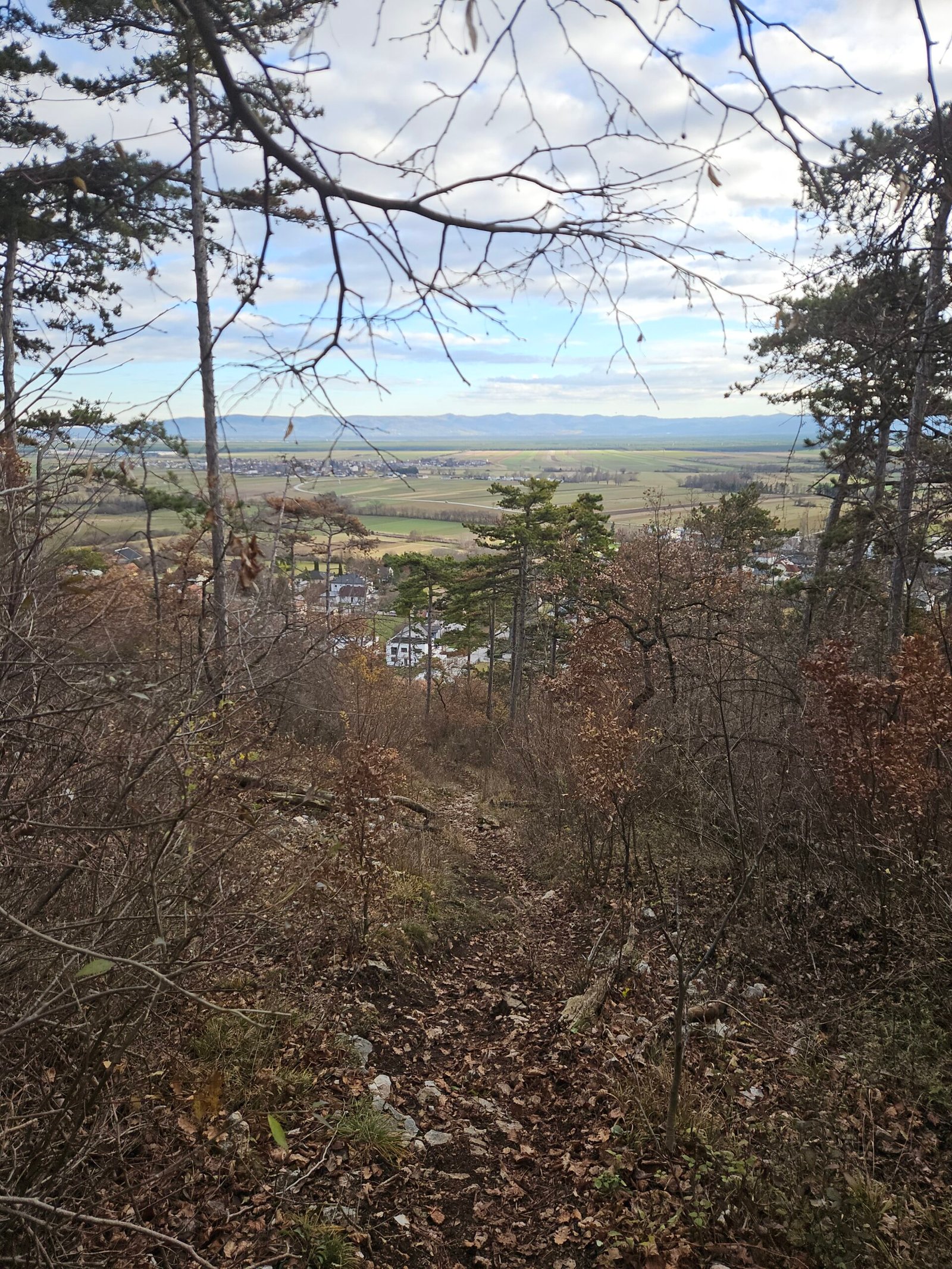 Wir lassen schweren Herzens die behagliche Sitzgelegenheit zurück, steigen dann kurz ein Stück ab und wandern dann recht flach hinüber zum nahen Engelsberg. Wir passieren diesen rechter Hand und steigen dann in der Nähe des “Hundslochs” wieder nach Winzendorf hinunter. Über die Winzerstraße erreichen wir dann in wenigen Minuten wieder die Bahnhaltestelle.