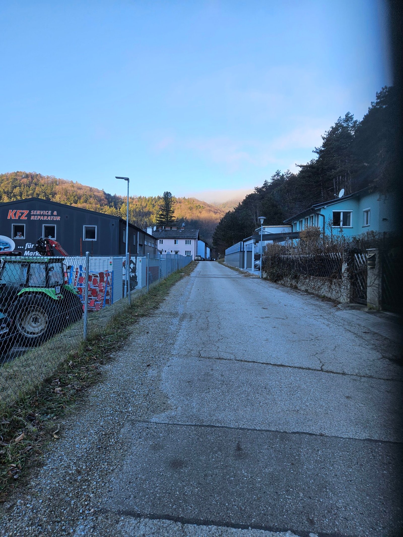 Die folgenden Kilometer gestalten sich wenig aufregend, einziges Highlight ist ein kleines überdachtes Brünnlein im Mittelteil des Grabens. Ansonsten besteht der gesamte Weg bis zum Ortsteil Steinhof aus einer langgezogenen, leicht abfallenden Schotterstraße mit über fünf Kilometer Länge. Wer also gerne den einen oder anderen Meter laufender Weise zubringt, ist hier durchaus angehalten dies zu tun, immerhin kann man sich hier ohne viel Aufwand die eine oder andere (Viertel-) Stunde sparen. In Steinhof geht es dann, vorbei an etwas trostlos wirkenden Einfamilienhäusern, zurück in die Zivilisation. Über eine kleine bewaldete Kuppe erreichen wir in weiterer Folge bei der Mitterfeldgasse den Stadtrand von Berndorf. Im Laufschritt geht es durch die Siedlung hinunter. Wenig später passieren wir die durchaus eindrucksvolle Margaretenkirche, steigen dann noch ein Stück hinunter Richtung Triesting und erreichen kurz vor ebenselbiger den Bahnhof Berndorf-Stadt, von wo uns der Regionalzug über Leobersdorf zurück nach Wiener Neustadt transportiert.
