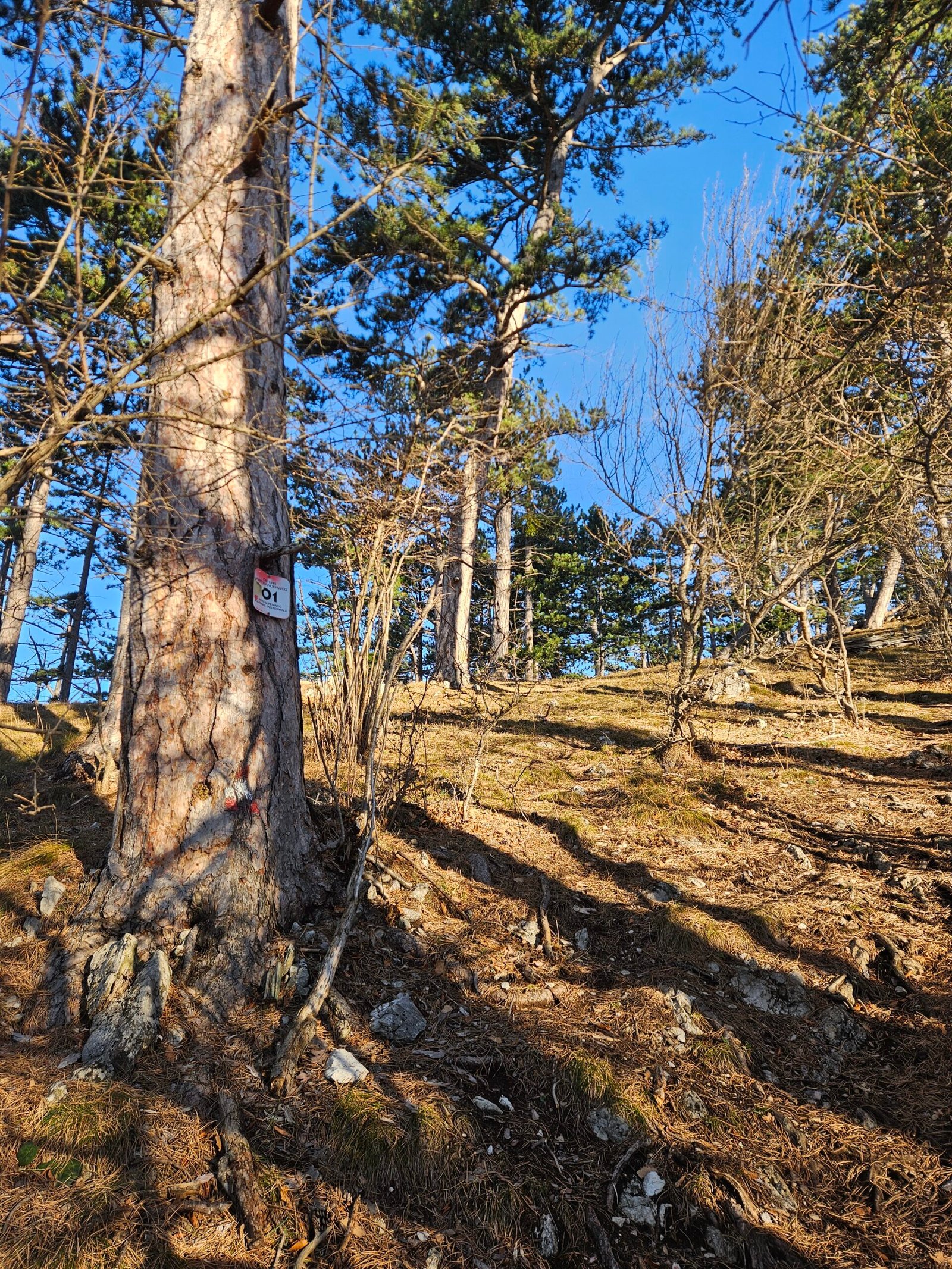 Ein weiteres Wochenende, eine weitere Tour in den Gutensteiner Alpen, dieses Mal mit einem Transfer aus dem Pistingtal ins -nicht ganz so- nahe Berndorf. Von der Bahnhaltestelle Miesenbach-Waidmannsfeld im beschaulichen Dorf -richtig geraten- Reichental aus queren wir die stark befahrene Bundesstraße 21, gehen dann nach links durch die kleine Siedlung und dann, der rot-weißen Markierung folgend nach rechts in den Wald hinauf. Wir passieren einen alten Luftschutzbunker und steigen dann steiler den lichten Föhrenwald hinauf. Die zunehmende Steilheit, aber auch die stärker werdenden Sonneneinstrahlung, sorgen für anständige Perspiration schon auf den ersten hundert Höhenmetern. Nach einem kurzen Direktaufstieg dreht der Weg nach links und begibt sich damit hinüber zum Kammverlauf, welchem wir fortan folgen.