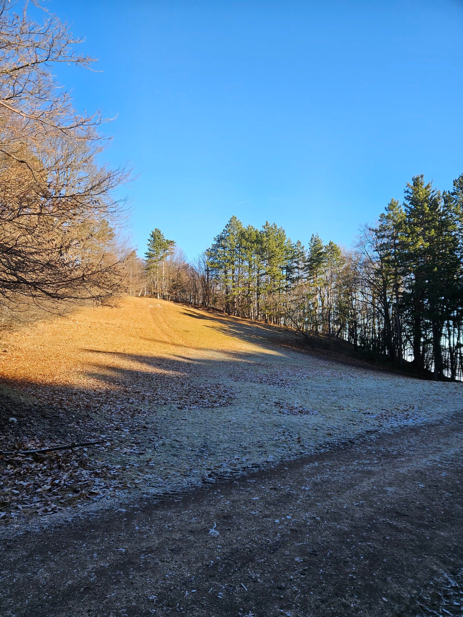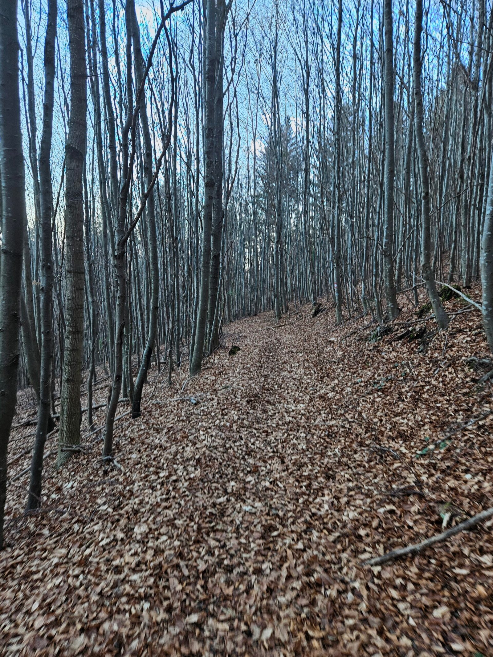 Das Stück hinunter zur so lieblich getauften Fo(t)zeben gestaltet sich dann unvermittelt steil und unwegsam, nachdem wir die letzten ein, zwei Kilometer auf ordentlich ausgebauten Forststraßen zugebracht haben. Am Ende der Wiesenfläche treffen wir noch auf die Mandling Schihütte (730m). An den gepflogenen Skisport ist aktuell allerdings kaum zu denken, nicht einmal mit den zernudeltsten Steinskiern kommt man aktuell auch nur in die Nähe der 1935 erbauten Selbstversorgerhütte. Wir folgen weiter in leichtem Auf und Ab dem Hügelrücken, beim aussichtsreichen Robert-Krenn-Kreuz biegen wir nach links ab und begeben uns hinunter in die Schattenseiten des Lebens.
