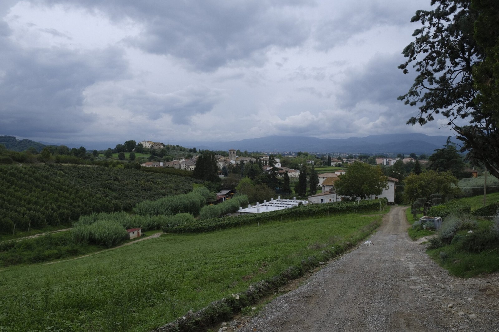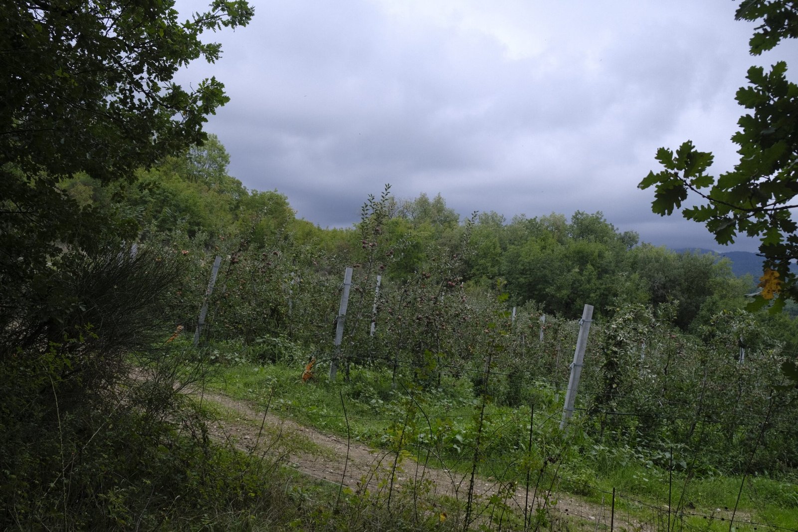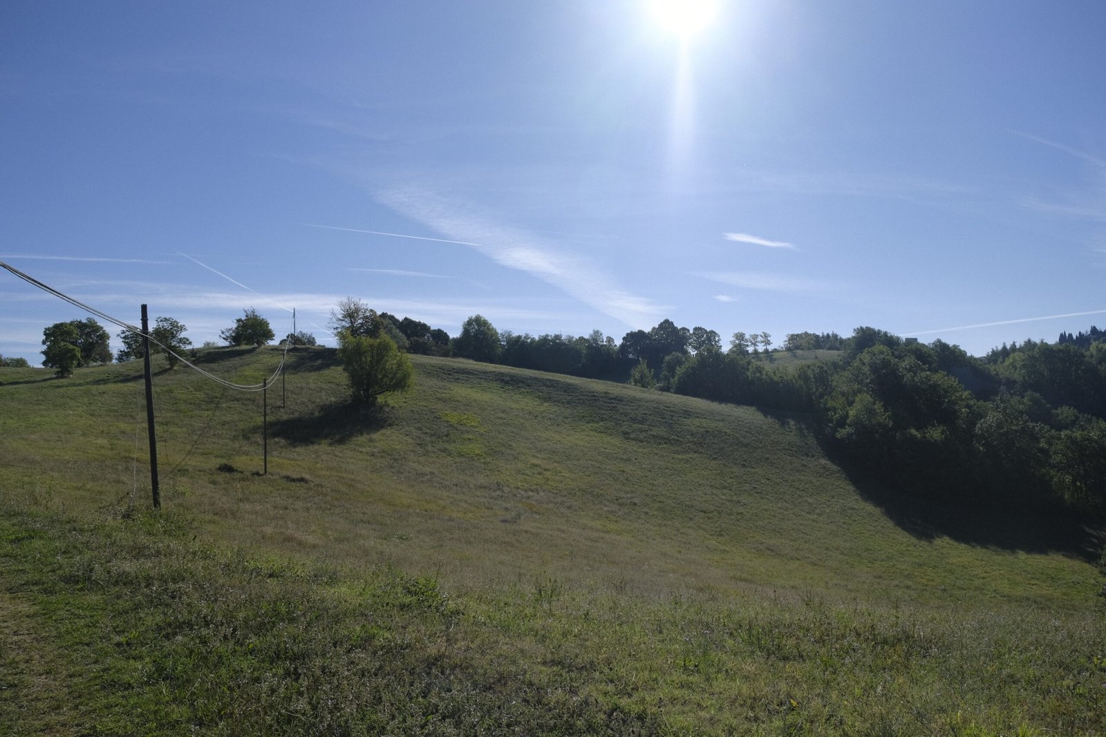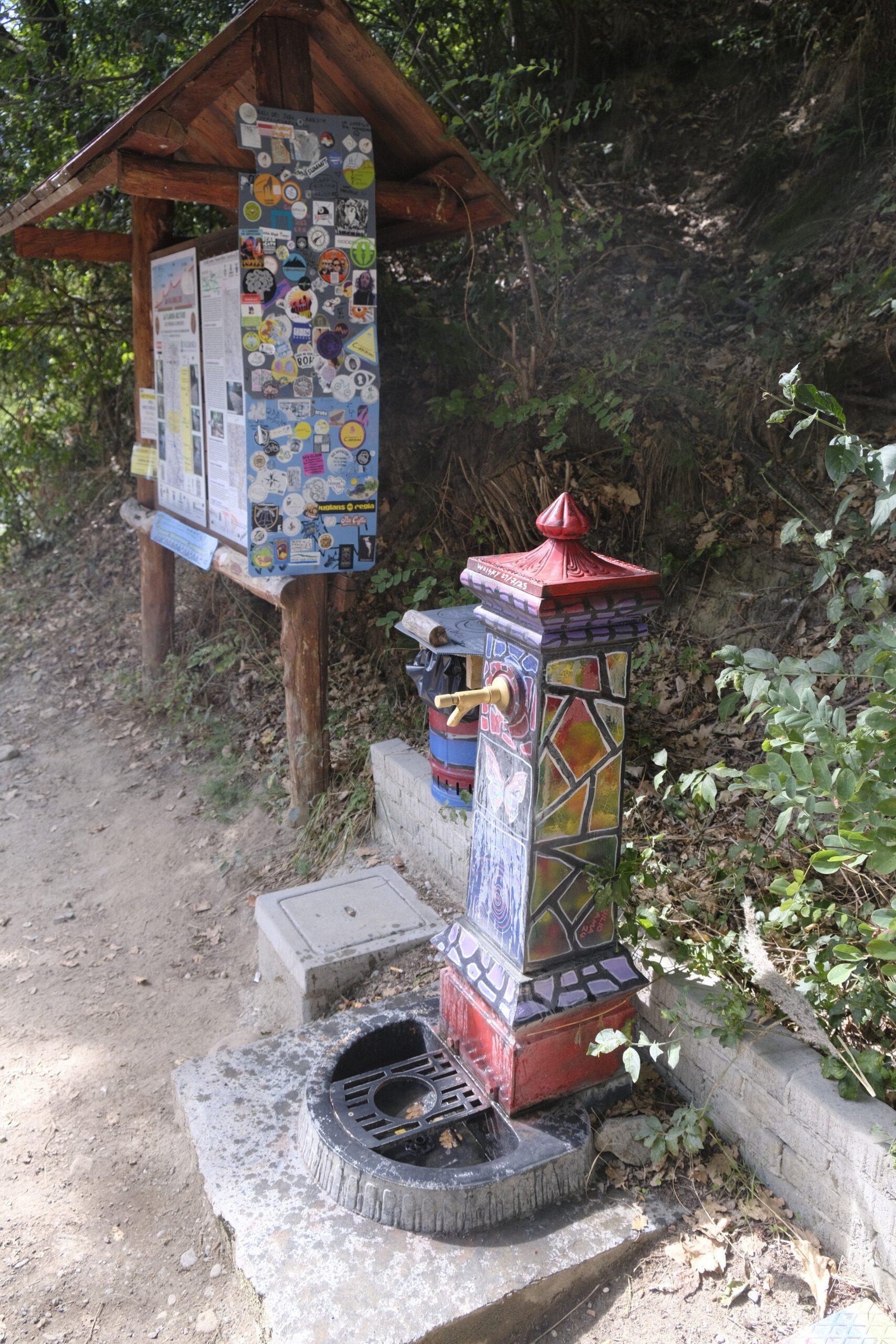 Der folgende Abschnitt gehört gleichzeitig landschaftlich zum Schönsten und wegmäßig zum absolut Schirchsten, das die Via degli Dei zu bieten hat. Auf den restlichen elf Kilometern nach Monzuno folgt der Weg entweder direkt dem Straßenverlauf, oder schlängelt sich in geringem Abstand an dieser entlang. Entlohnt wird man dafür mit einem netten Rückblick auf den Monte Adone, so wie weit streifende Aussichten in die umliegende Landschaft. Ein wahres Highlight sind auch die vielen selbst gebastelten Hinweisschilder, Picknick- und Wasserstellen, sowie selbst organisierte Mistkübel entlang des Weges. Im sonst oft gegenüber fremden sehr verschlossenen wirkenden Häusern und Grundstücken (ich sage nur attenti al cane und proprietà privata) ist diese Form der anonymen Gastfreundschaft absoluter Balsam für die Seele. Vorerst sind die Routenbauer auch noch bemüht die Asphaltpiste bei jeder Gelegenheit zu verlassen. Was folgt sind ein paar abenteuerliche Single-Trails durchs Gemüse, ohne jedoch je die nahe Straße aus den Augen (oder zumindest Ohren) zu verlieren.