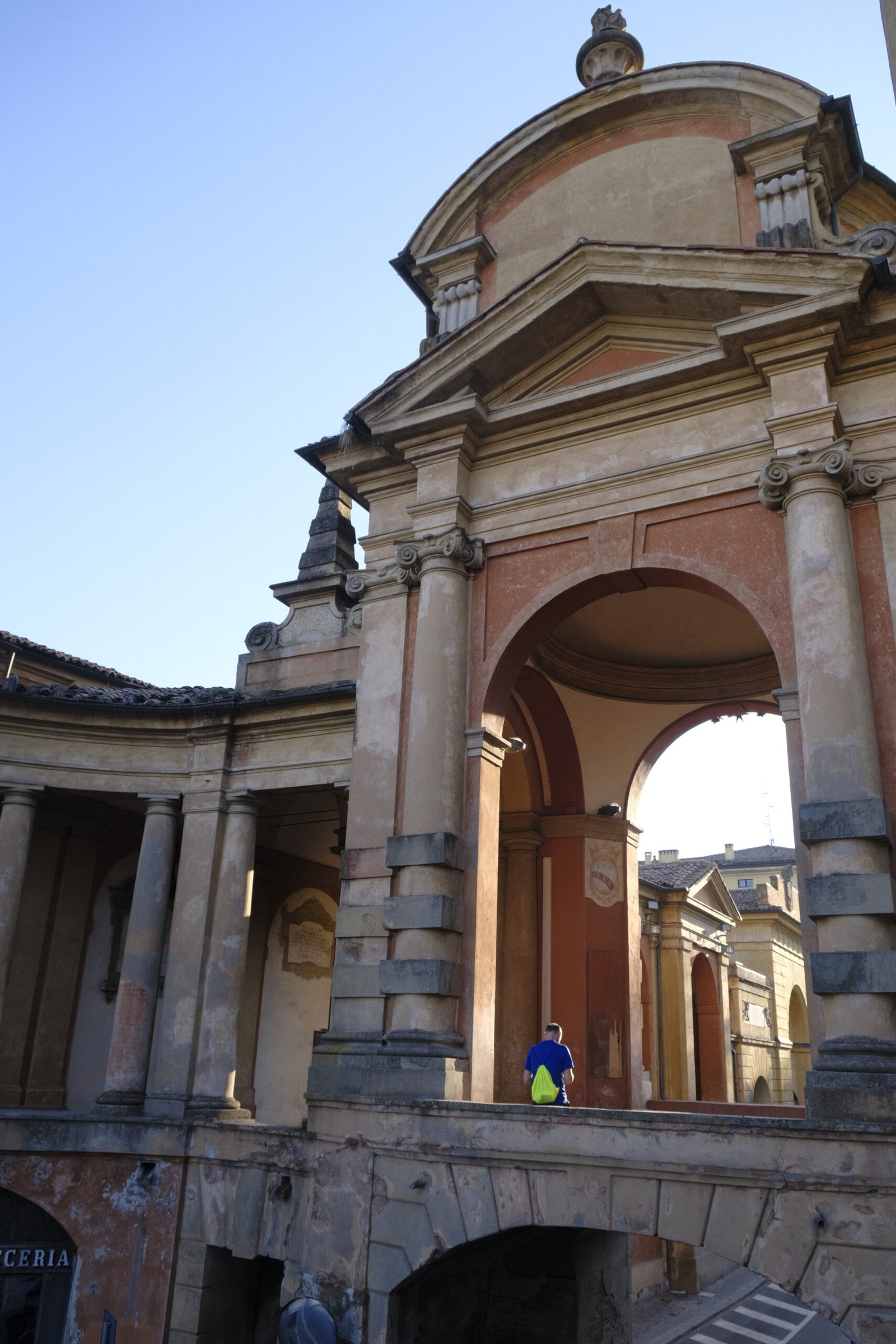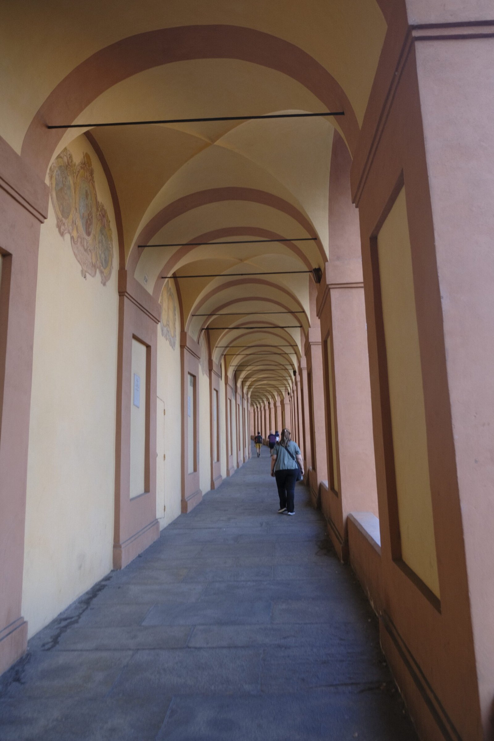 Vom Hauptplatz, der Piazza Maggiore, gehen wir in südliche Richtung, vorbei an der eindrucksvollen, aber unvollendeten Basilika San Petronio. Über die Via Farini biegen wir in die Via Saragozza ein, die sich durch die gleichnamige Porta Saragozza zum westlichen Ortsende hinzieht. Hier beginnt auch der gut vier Kilometer lange Portico, der sich aus der Stadt hinaus auf den Colle della Guardia zieht. Der wohl längste Arkadengang der Welt. Die erste Hälfte des Weges geht es noch flach dahin, dann quert der Wandelgang am Arco del Meloncello eindrucksvoll, aber doch etwas unvermittelt die Straßenseite.