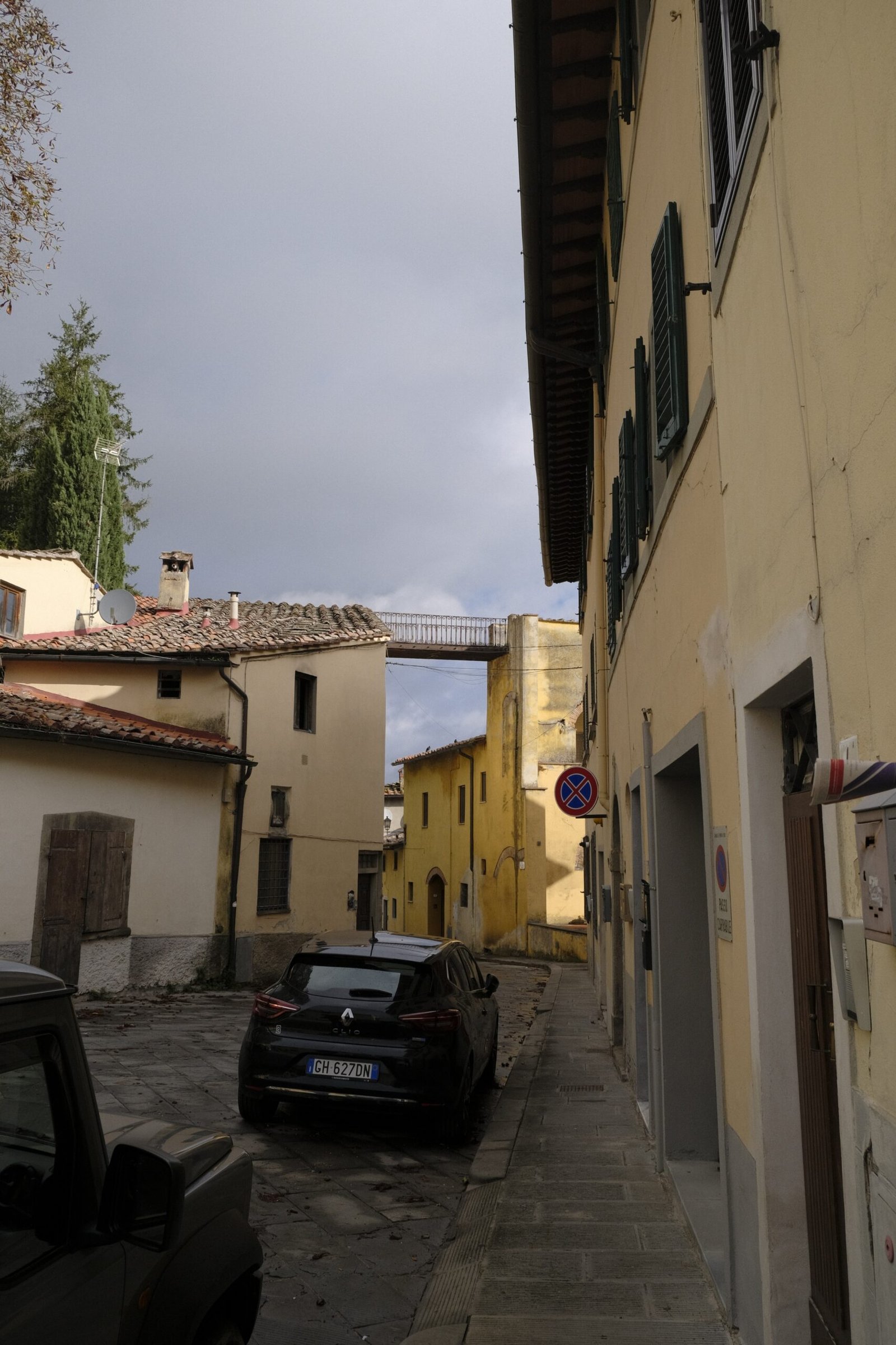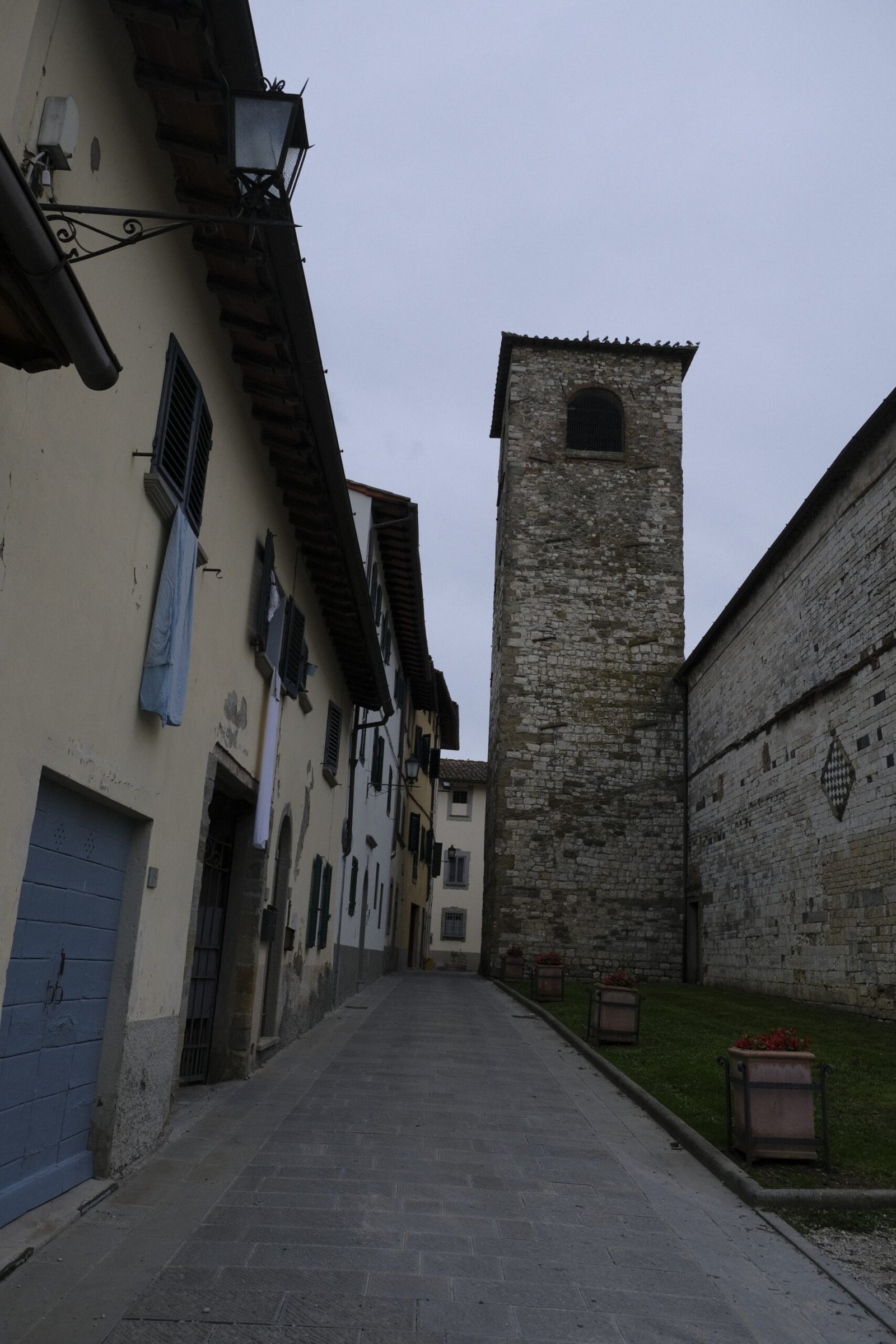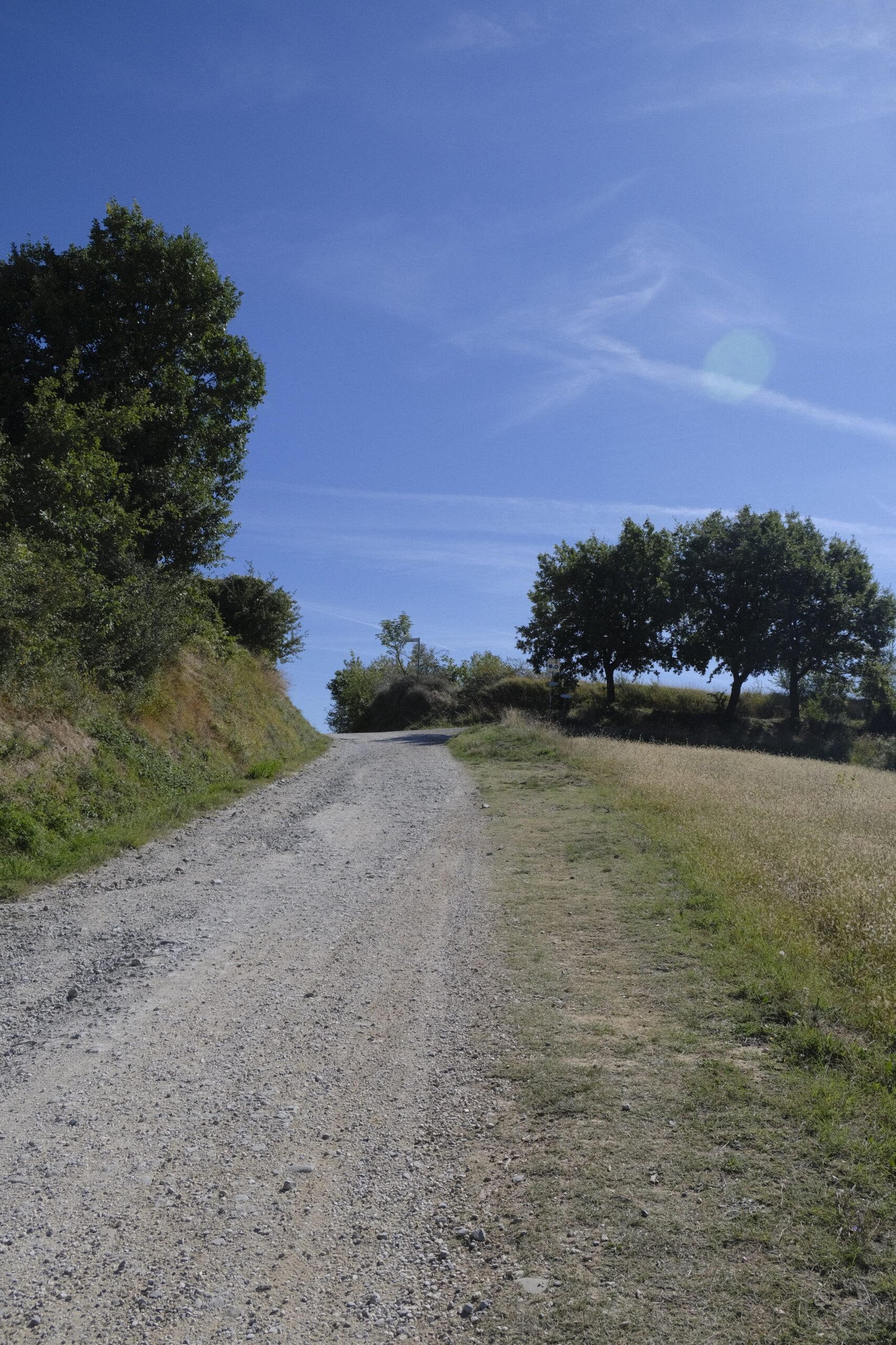 Wir verlassen das Ortszentrum von San Piero sicher nicht so frisch, wie wir schon einmal gewesen sind. Der Vortag steckt uns nicht nur im übertragenen Sinne noch in den Beinen. Wir passieren die Fortezza Meicea, die wir leider nur von der Weite betrachten können, wandern entlang eines etwas weniger historisch bedeutsamen Campingplatz entlang und erreichen dann die Schnellstraße SS65. Auf der anderen Seite geht es dann über eine baumgesäumte Allee durchaus steil hinauf zur Villa del Trebbio.