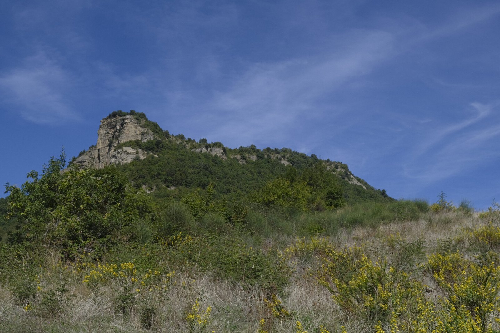 Schotterstraßen wechseln sich auf den nächsten Kilometern mit kurzen Straßenabschnitten ab. Immer wieder trifft man auf Spuren der Zivilisation, ganz der wildromantischen Natur des Apennin haben wir uns an dieser Stelle also wohl noch nicht hingegeben. In leichtem Auf und Ab wandern wir vorbei am Monte del Frate Richtung Brento. Kurz vor Erreichen des winzigen Bergdorfes begrüßt uns allerdings kein Schild mit dieser Aufschrift, sondern eines von Monzuno. Nach kurzer Verwirrung ist auch geklärt, dass wir noch nicht unser Tagesziel erreicht haben, sondern nur die Grenze des korrespondierenden Verwaltungsbezirks erreicht haben. Direkt nach der Tafel müssen wir uns auch entscheiden, ob wir die zusätzlichen rund einhundertundfünfzig Höhenmeter und ein bis zwei Kilometer Mehrweg in Kauf nehmen wollen, um den benachbarten Monte Adone zu besteigen, oder geradeaus den Direktweg nach Brento anzupeilen. Der unscheinbare Gupf entpuppt sich auf der Rückseite durch seine steil abfallenden Felsformationen als echtes Postkartenmotiv, das auch kaum in einem Reiseführer fehlen darf. Umso enttäuschter sind wir zwar, als wir die Entscheidung treffen, die Bergetappe gegen ein kühles Getränk in der nächsten Bar zu tauschen, in Anbetracht der brütenden Mittagshitze und der schon etwas müden Beine, ist dies aber einfach die bessere Entscheidung. Die paar hundert Meter nach Brento sind dann wenig spannend, verlaufen aber über eine schattige Schotterstraße und im Ort gibt es tatsächlich mit der Vecchia Trattoria Monte Adone ein kleines Beisl mit Speisen und Getränken, bei dem sich gut und gerne eine Rast einlegen lässt.