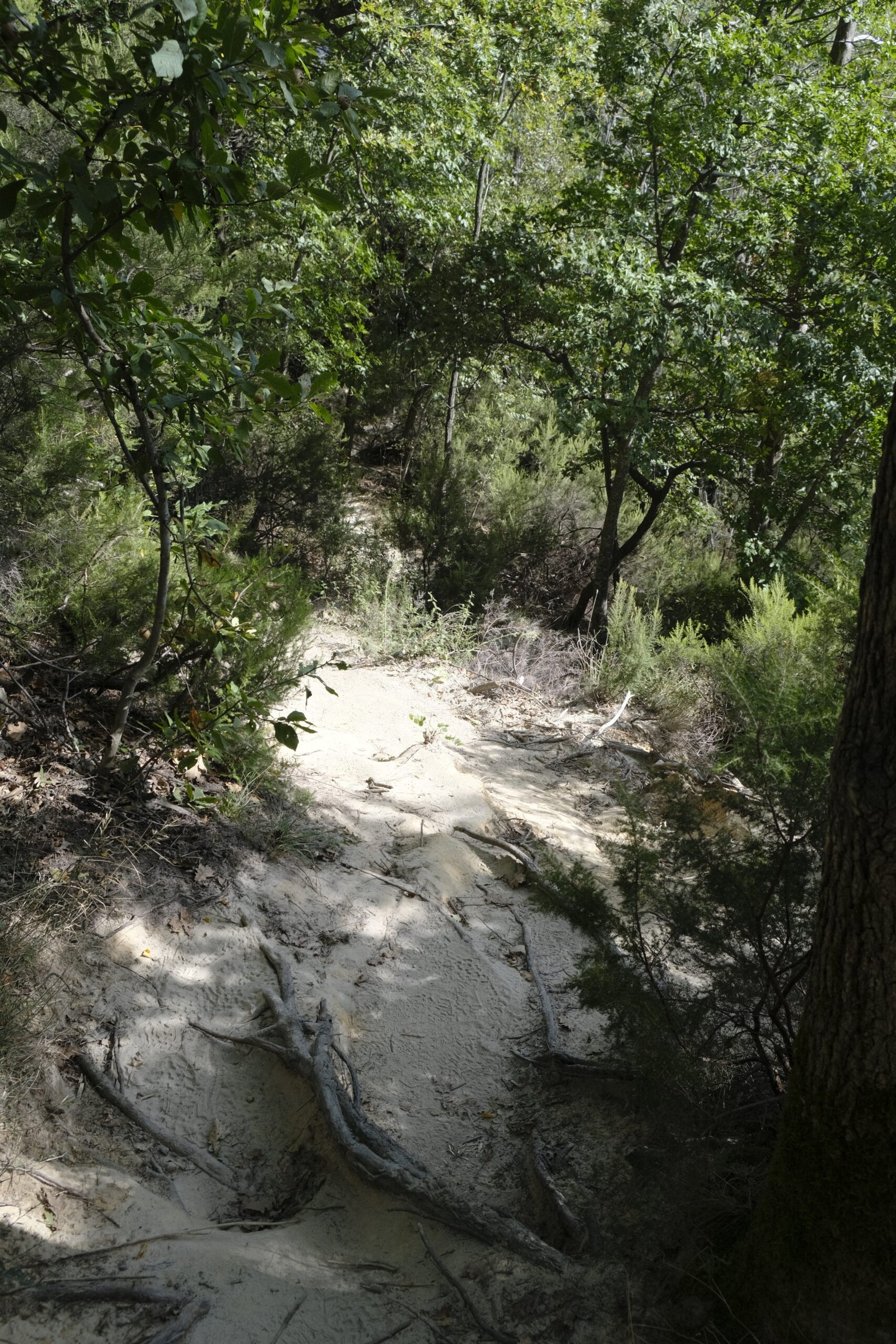 Vollends vermiest uns die Tour dann aber wider allen Erwartens nicht die Witterung, sondern ein kleines unscheinbares Hinweisschild am höchsten Punkt der Erhebung, der uns in überbordendem Italienisch erklärt der Weg sei versperrt. Es würden ihn allerdings nicht die Toten halten, sondern ein Erdrutsch habe den Steig kurzerhand in einen Ex-Steig verwandelt. Also alles wieder retour und hinunter zur gut einen Kilometer entfernten Abzweigung. Warum weder beim Club Alpino oder auch sonst wo jemand auf die Idee gekommen ist, die Wegsperre schon etwas früher anzukündigen, weiß wohl nur der Heilige Super Mario. Aber es hilft ja nichts, wir nehmen die gut zwei Kilometer und 150 Höhenmeter extra auf unser ohnehin schon pickepackevollen Etappe murrend in Kauf und begeben uns auf die Umleitung, die teils über besch…eiden in Schuss gehaltene Wanderwege, teils über gut befestigte Flanierwege den Gipfel des Monte Gazzaro umgeht, dabei nette Tiefblicke auf den künstlichen Lago di Bilancino freigibt und am Passo dell’Osteria Bruciata wieder auf die Originalroute stößt. Osteria gibt es hier irgendwo im Nirgendwo leider keine, aber zumindest zwei Picknicktische für eine dringend notwendige Pause.