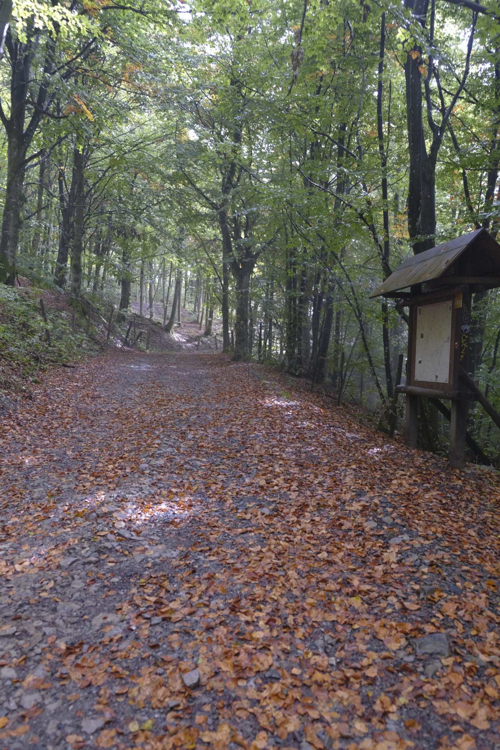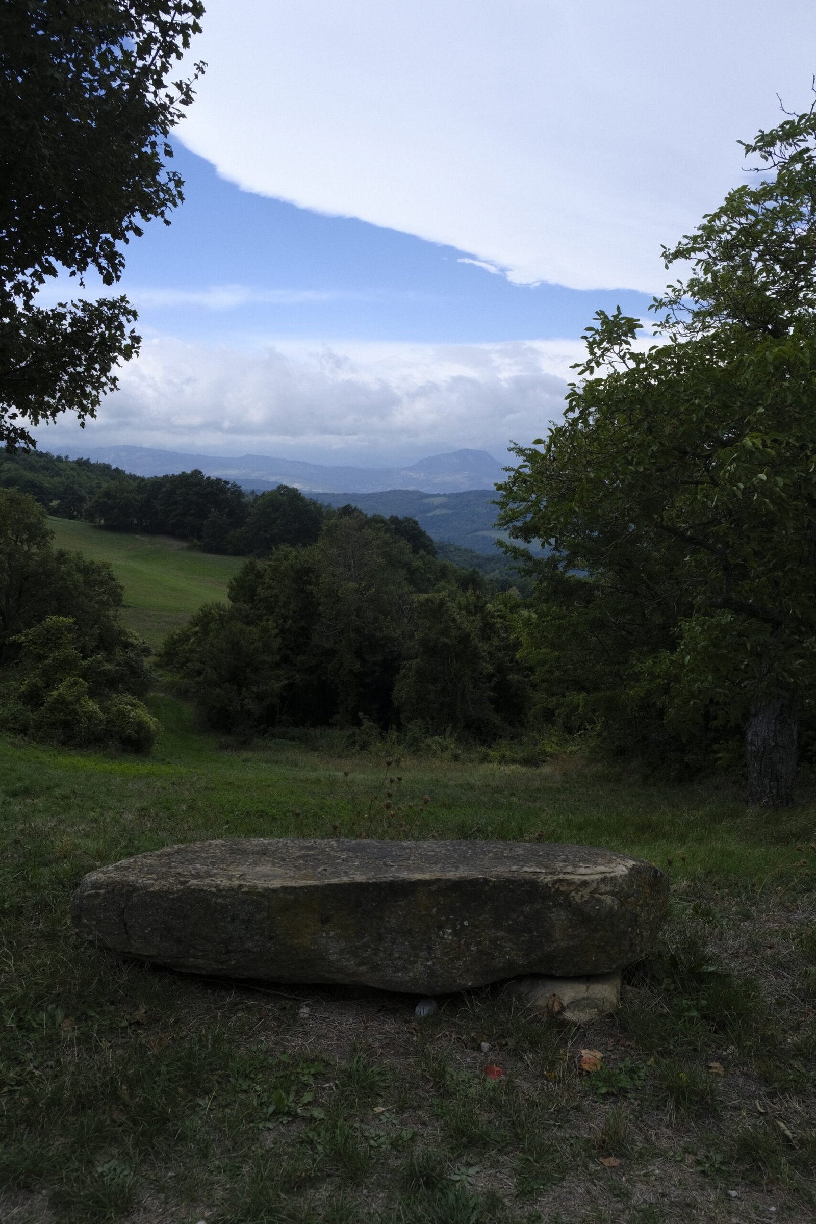 Wie so oft starten wir unseren Spaziergang mit einem anregenden Aufstieg. Am Sportplatz von Monzuno geht es teils durchaus steil nach oben. Wir genießen den Rückblick aufs Dorf und vielleicht auch zum letzten Mal auf Bologna und begeben uns auf den Hügelrücken. Wir passieren mit dem Rifugio del Viandante nicht nur eine potentielle Nächtigungsstätte, sondern wie es scheint eine richtige Hippie-Kommune. Außerdem wandern wir entlang des Monte Venere, aufgrund des Bezugs auf die betörende Göttin Venus auch einer der Namensgeber der Via degli Dei. Kurzdarauf spazieren wir gemütlich durch die Piana deli Castagni, einen wirklich liebreizenden Kastanienhain, bevor es wieder in den Wald zurück geht.