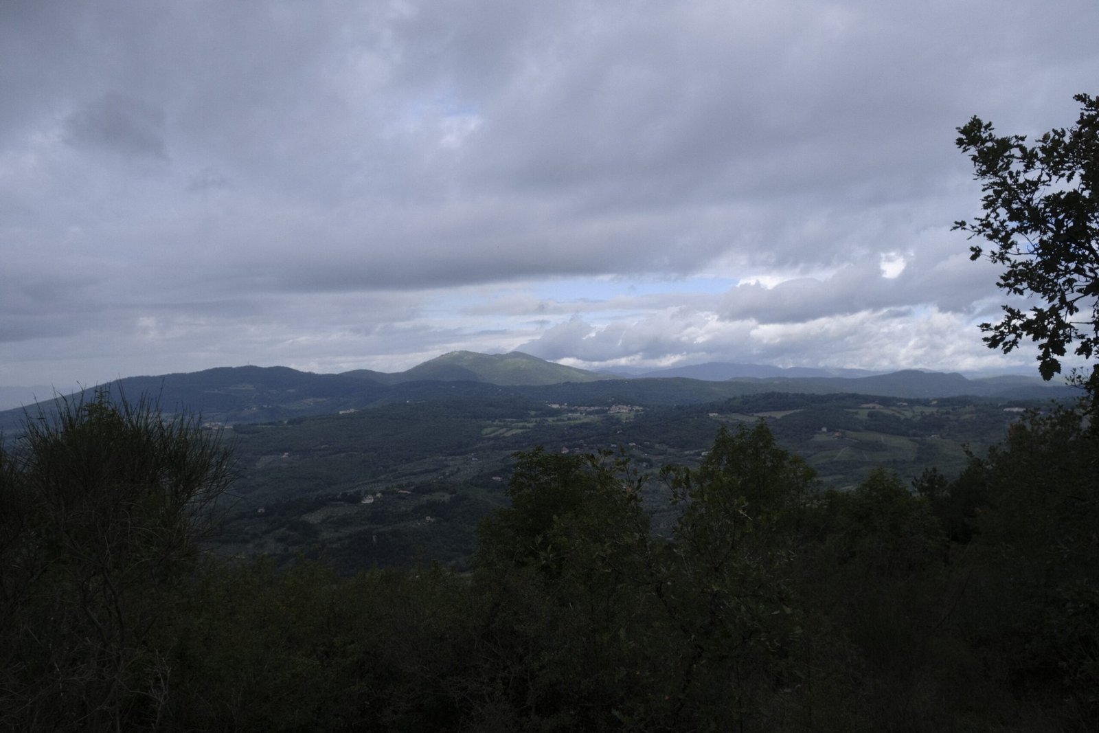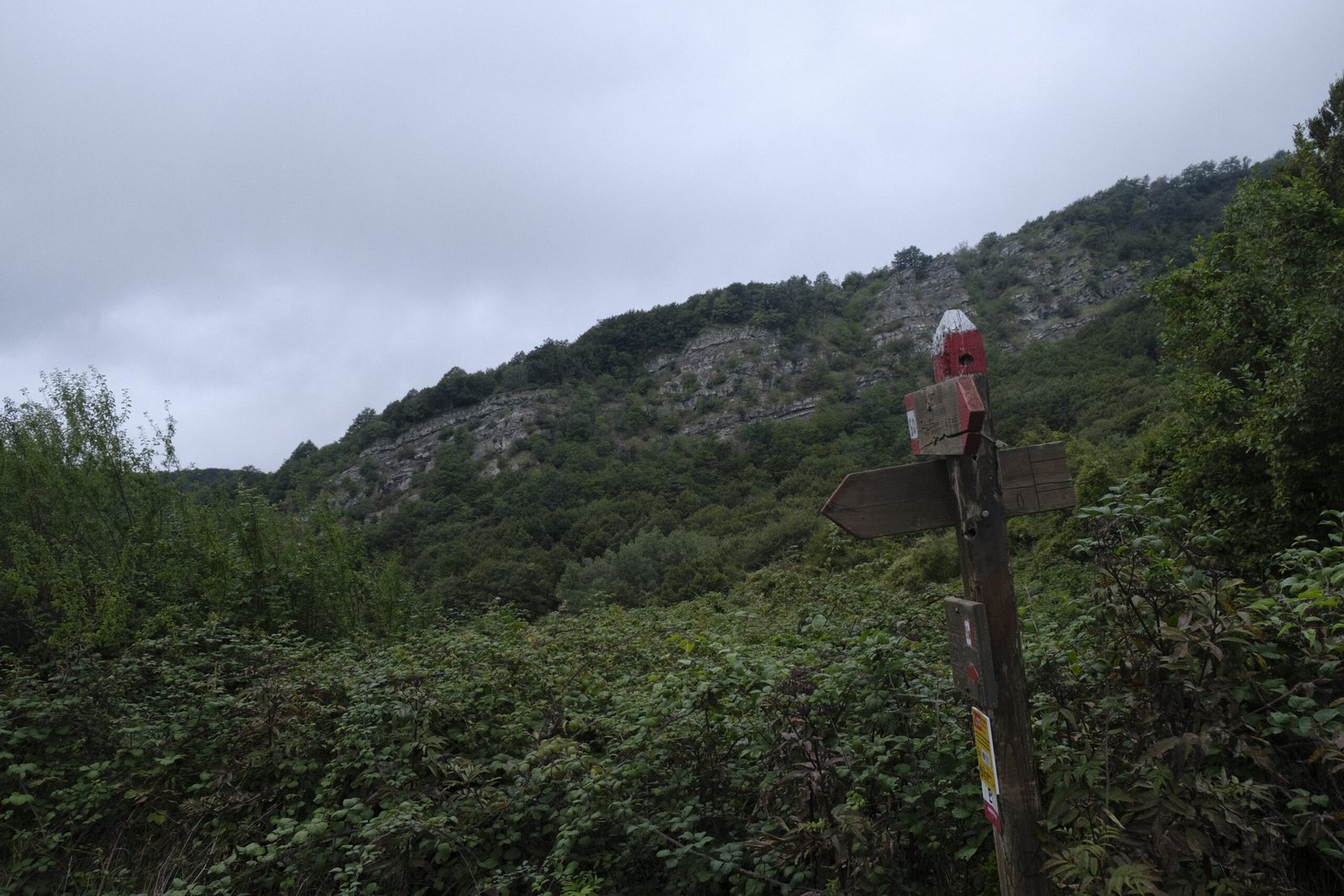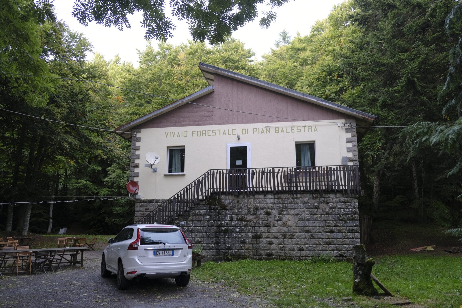 Der Weg hinunter und hinein nach Madonna dei Fornelli zieht sich dann überraschend dahin, weshalb sich das beschauliche Städtchen auch optimal für eine kurze Rast anbietet. Neben mehreren Lokalen gibt es auch ein paar kleinere Geschäfte, um den schrumpfenden Lebensmittelvorrat (oder auch einfach nur den Blutzuckerlevel) wieder etwas auf Vordermann zu bringen. Der Weg aus dem Ortskern hinaus gestaltet sich dann etwas holprig. Mit vollem Bauch gehen sich die folgenden Höhenmeter in den Bergwald hinein nicht unbedingt leichter, als die bereits vergangenen. Wir folgen dem Höhenzug nach Süden und treffen kurz hinter dem Monte dei Cucchi zuerst auf eine Forststraße und wenig später sogar wieder auf Asphalt. Diese führt uns leicht bergab nach Pian di Balestra. Solltet ihr wie wir auf dem Höhenzug in ein Unwetter geraten, bietet sich das hier gelegene Rifugio “Casa delle Guardie” perfekt für eine kurze Verschnaufpause und einen heißen Tee an. Weiter geht es über die Via Bastione, die die örtlichen Ferienhäuser mit der Außenwelt verbindet. Am Passo di Monte Bastione geht es dann wieder in den Forst hinein.