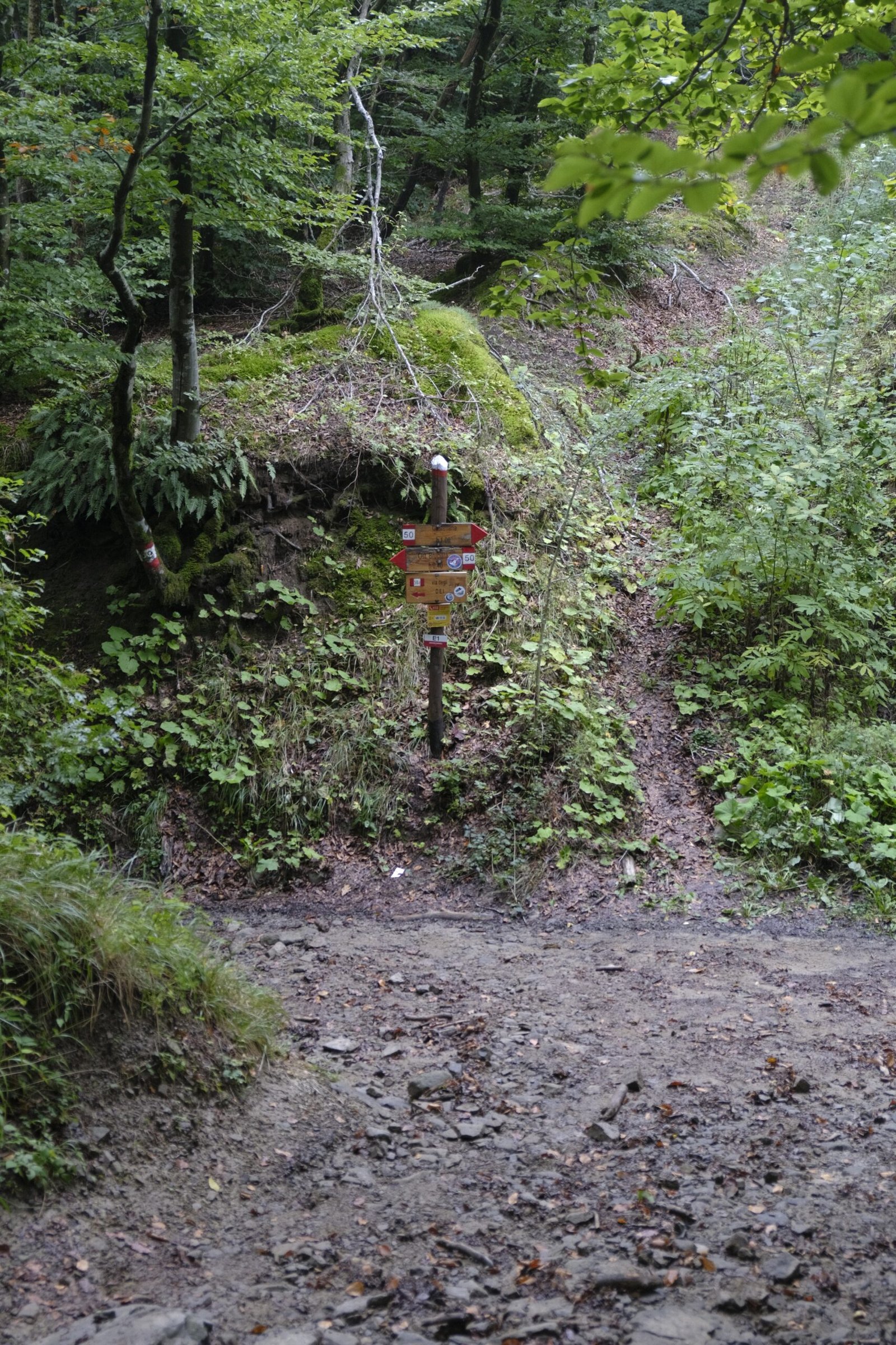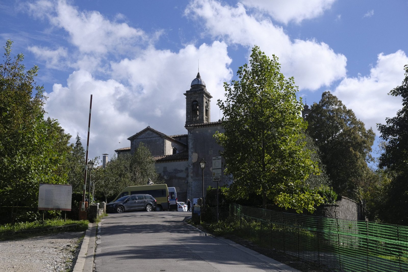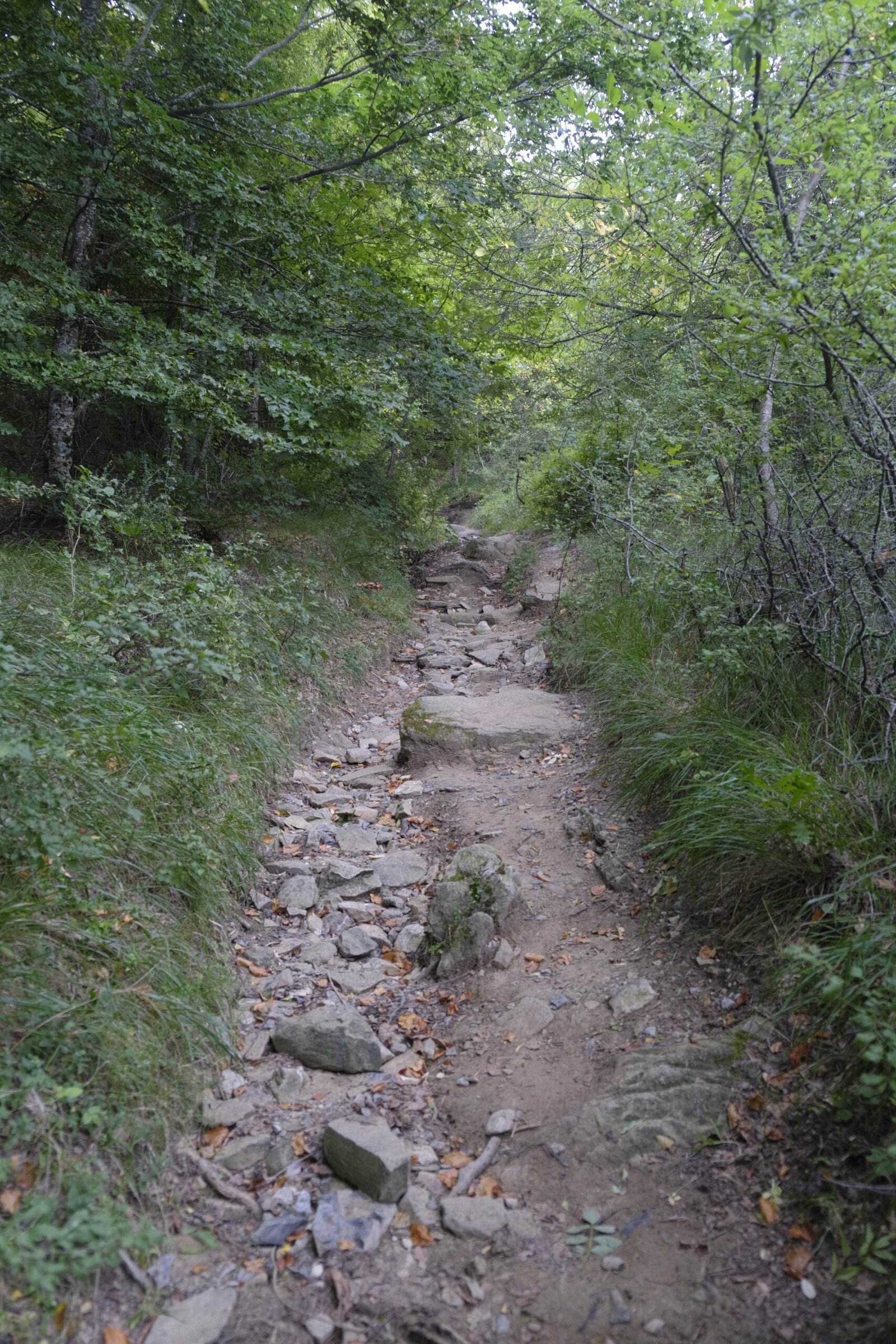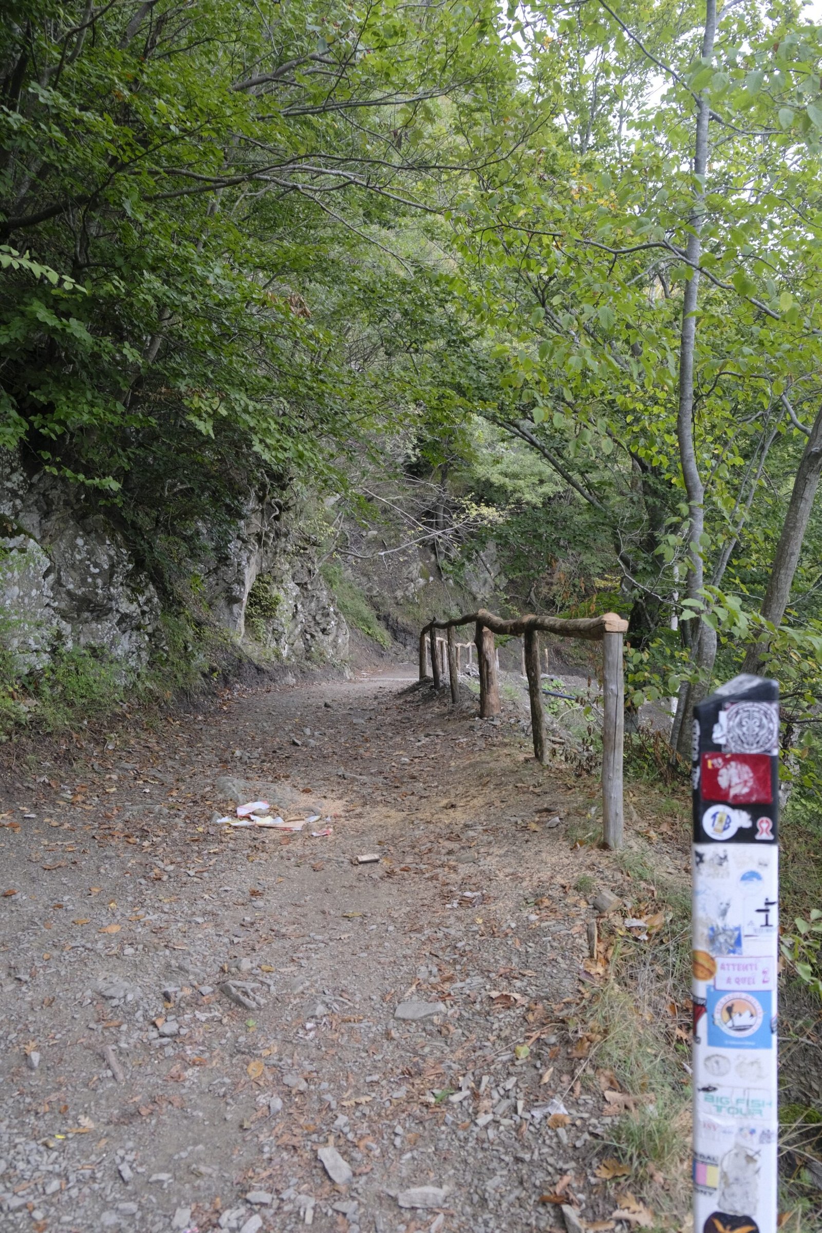 Der Weg hinunter und hinein nach Madonna dei Fornelli zieht sich dann überraschend dahin, weshalb sich das beschauliche Städtchen auch optimal für eine kurze Rast anbietet. Neben mehreren Lokalen gibt es auch ein paar kleinere Geschäfte, um den schrumpfenden Lebensmittelvorrat (oder auch einfach nur den Blutzuckerlevel) wieder etwas auf Vordermann zu bringen. Der Weg aus dem Ortskern hinaus gestaltet sich dann etwas holprig. Mit vollem Bauch gehen sich die folgenden Höhenmeter in den Bergwald hinein nicht unbedingt leichter, als die bereits vergangenen. Wir folgen dem Höhenzug nach Süden und treffen kurz hinter dem Monte dei Cucchi zuerst auf eine Forststraße und wenig später sogar wieder auf Asphalt. Diese führt uns leicht bergab nach Pian di Balestra. Solltet ihr wie wir auf dem Höhenzug in ein Unwetter geraten, bietet sich das hier gelegene Rifugio “Casa delle Guardie” perfekt für eine kurze Verschnaufpause und einen heißen Tee an. Weiter geht es über die Via Bastione, die die örtlichen Ferienhäuser mit der Außenwelt verbindet. Am Passo di Monte Bastione geht es dann wieder in den Forst hinein.