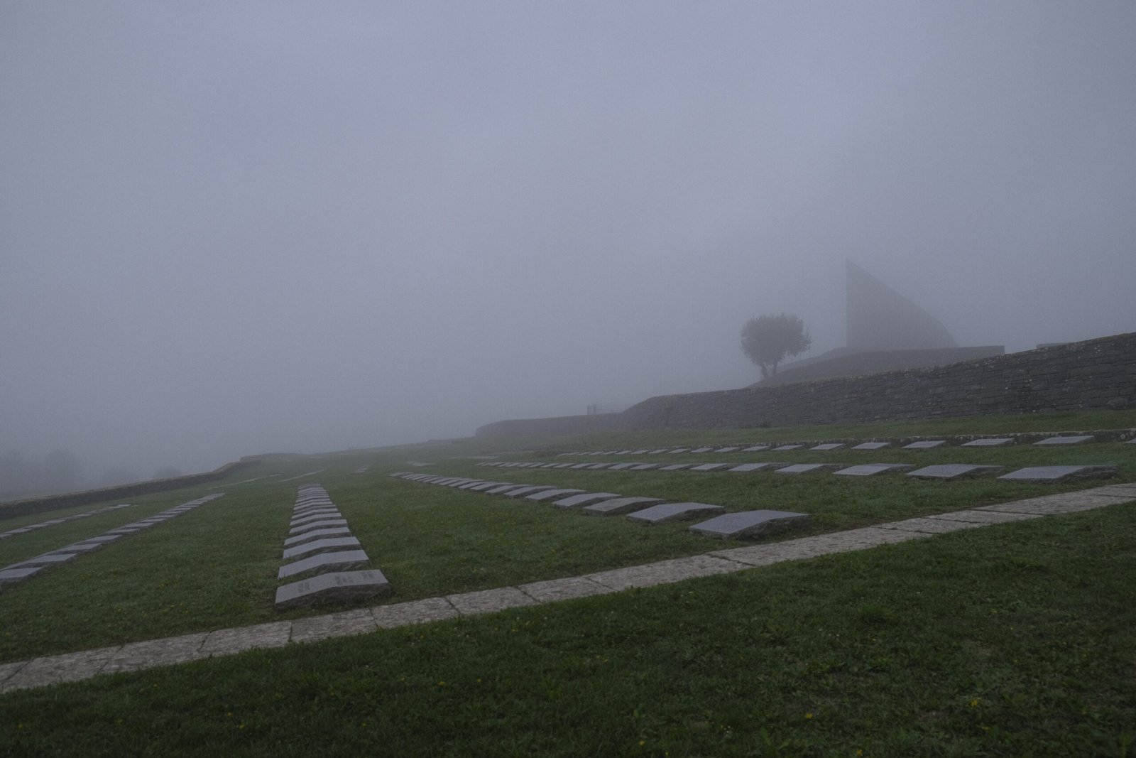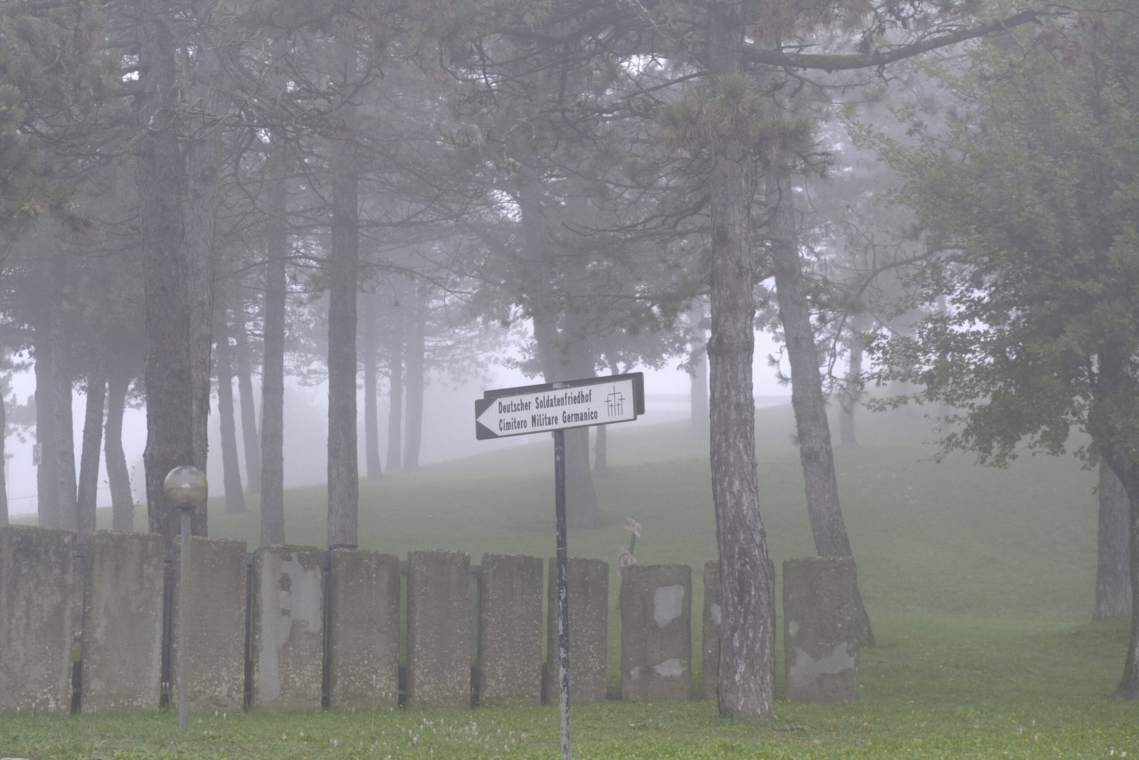 Die antike Militärstraße Via Flamina führt uns dann zu einem ganz anderen Relikt vergangener Kriegstage. Auf dem berühmten Passo della Futta findet sich mit dem “Deutschen Soldatenfriedhof Futapass” der größte Soldatenfriedhof Italiens. Unter dem bedrückenden Mahnmal am Gipfel der Anhöhe liegen hier rund 30.000 gefallene Deutsche Soldaten aus dem Zweiten Weltkrieg begraben. Ironischerweise sind der Friedhof mitsamt kleinem Besucherzentrum inklusive Wartebereich und Toilettenanlagen einer der einladendsten Pausenplätze, die uns auf der gesamten Wanderung untergekommen sind.