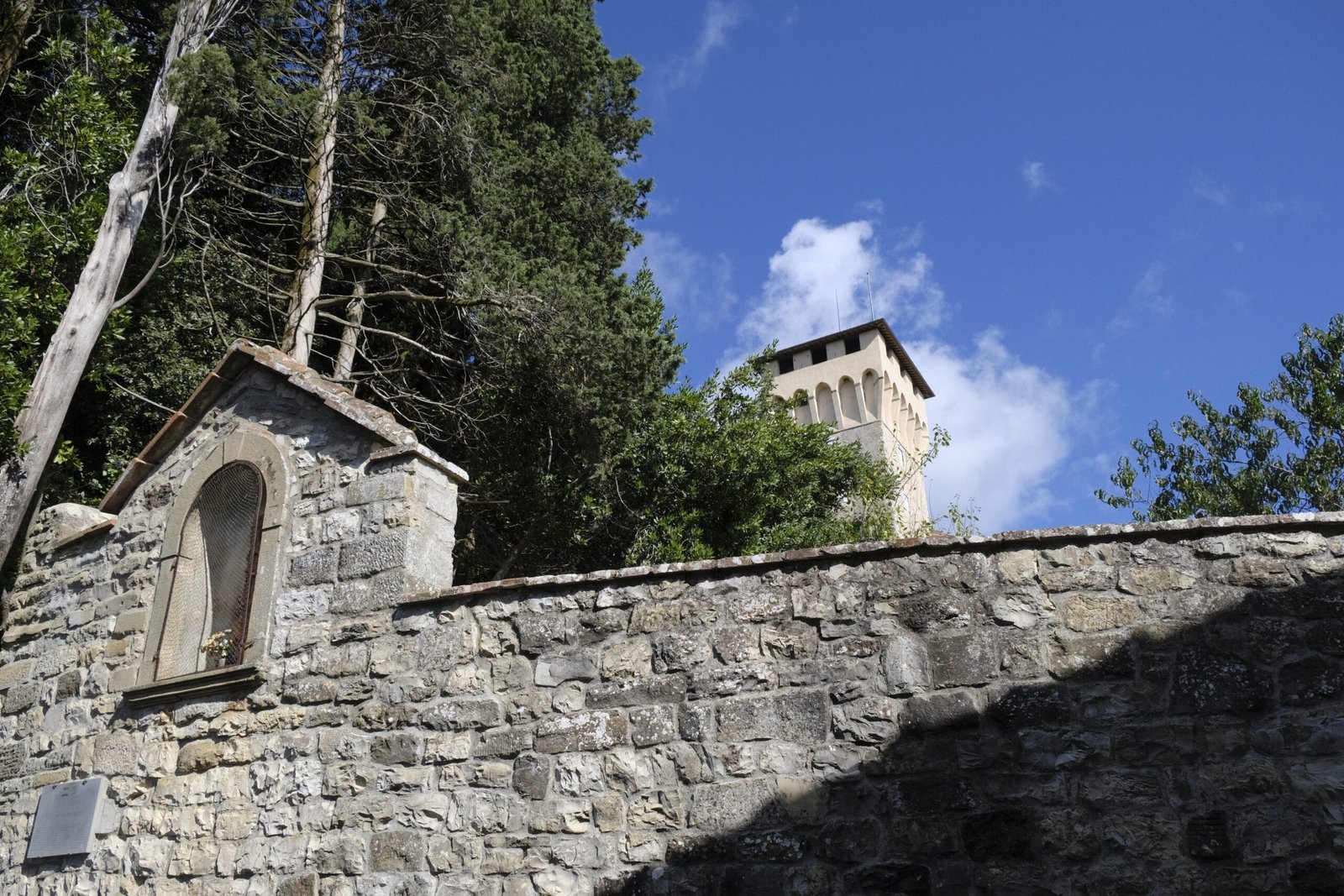 Doch bevor wir uns der Hauptstadt der Toskana nähern, wartet noch ein echtes Highlight auf uns. Über eine langgezogene Allee erreichen wir das Santuario di Montesenario. Die burgartige Anlage ist das Stammkloster des Serviten-Ordens und bietet nicht nur Gelegenheit seinen Blick nach oben zu richten, sondern überzeugt auch mit einem grandiosen Rundumblick auf die umliegende Landschaft. Zudem betreibt das Kloster ein kleines Café mitsamt kitschigem Souvenirladen, in dem es sich gut ein paar Minuten zubringen lässt. Beschwingt wandern wir wieder hinab, vorbei am märchenhaften Klosterfriedhof.