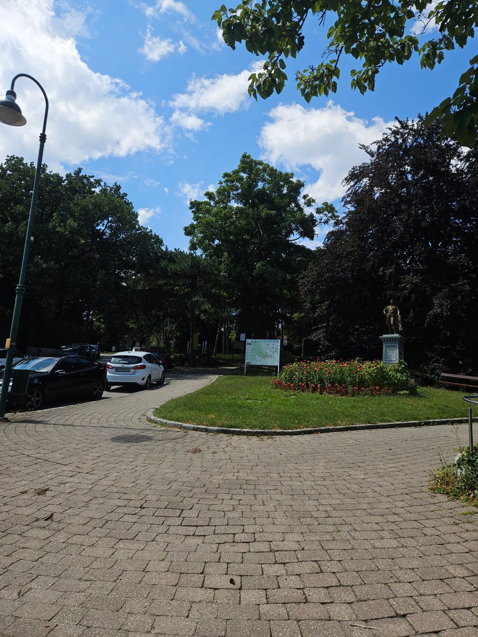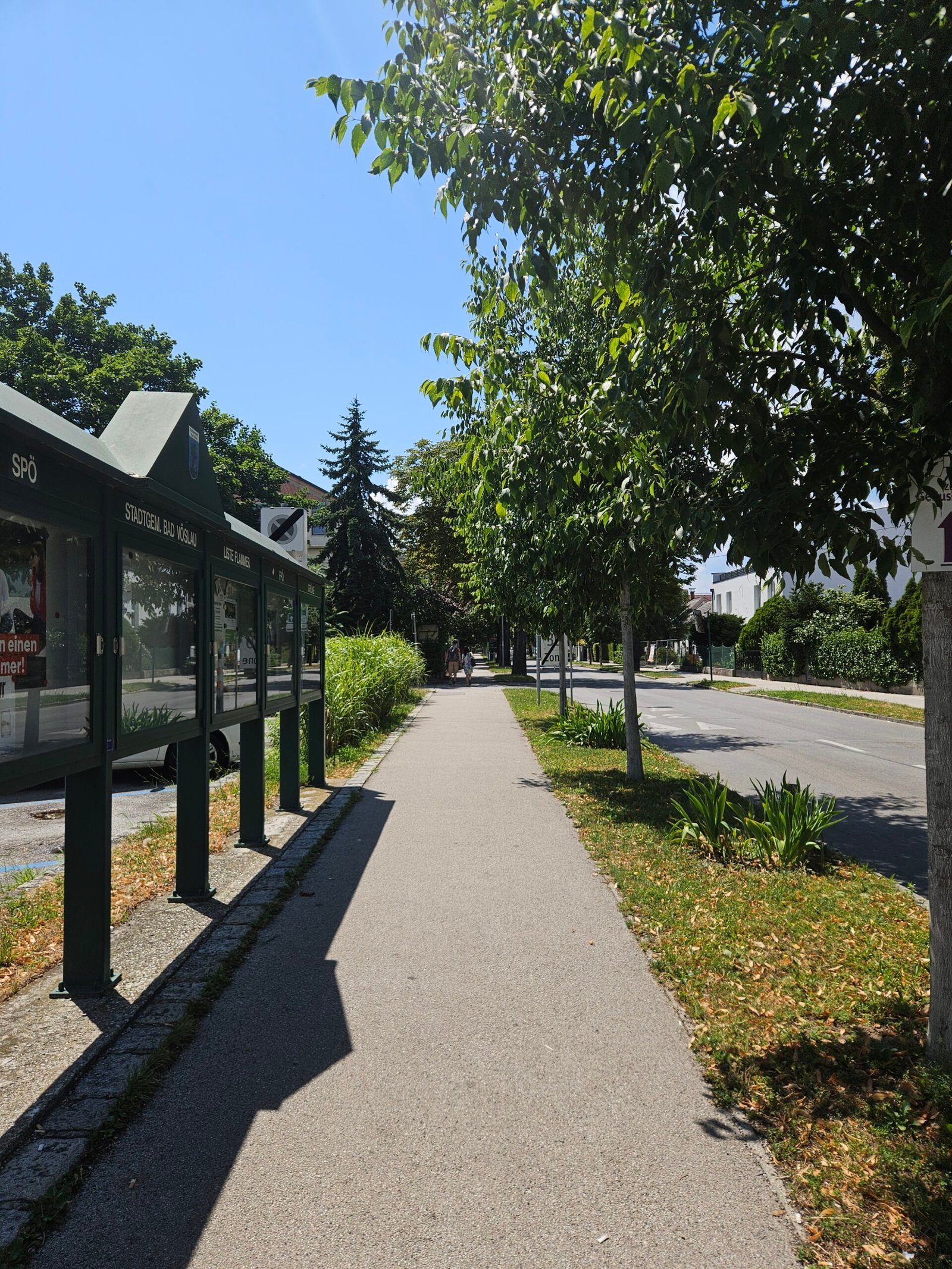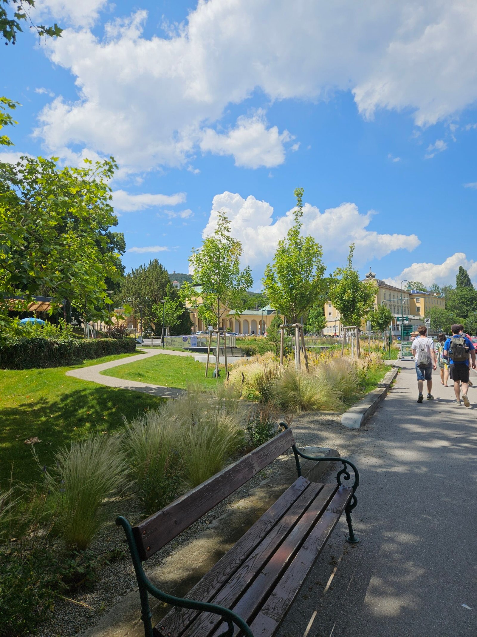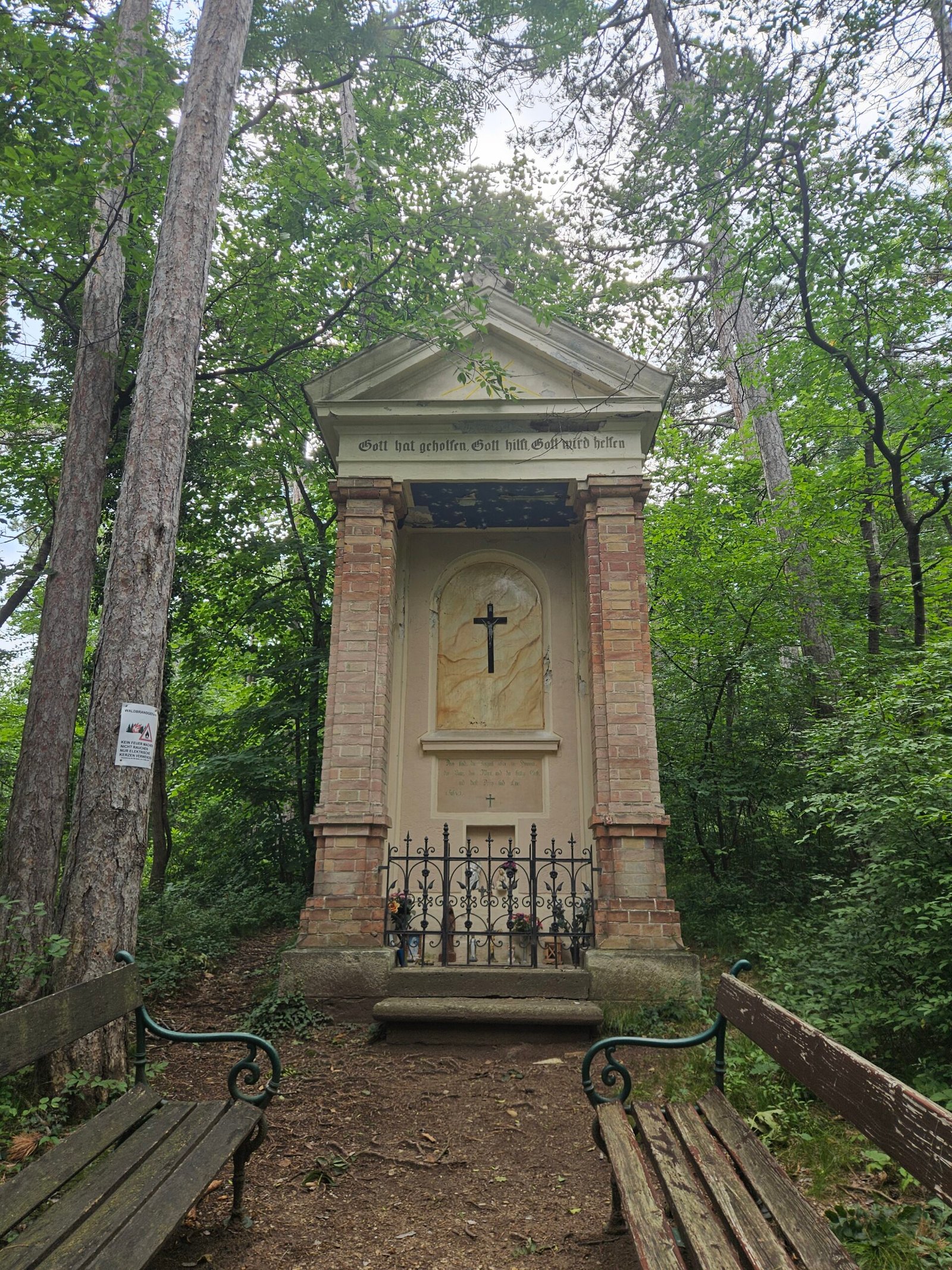 Da wir aber lieber etwas mehr im Gemüse unterwegs sein wollen, biegen wir alsbald wieder nach links ab, passieren die Waldandacht und später die kleine, “Auge Gottes” genannte, Kapelle. Jetzt nur noch am Waldspielplatz vorbei und wir stehen wieder mitten im sommerlichen Trubel des Kurparks. Am Thermalbad wieder linkerhand vorbei und hinunter ins Zentrum von Bad Vöslau. Entlang der Bahnstraße gelangen wir dann wieder retour zum Zug.